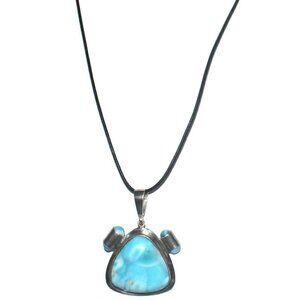 Rare High Quality Aqua Blue Larimar Stone Sterling Silver Pendant Cord Necklace