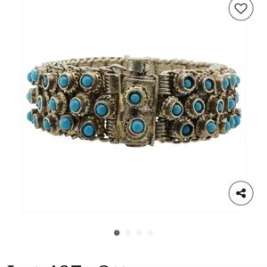 We took both items to a jeweler, and they indicated that the stones were turquoise but could not clarify if the item was silver. The cost is based on research from the last two photos.