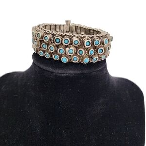 Rare Indian Antique Slivertone and Turquoise Necklace and Bracelet from 1950s