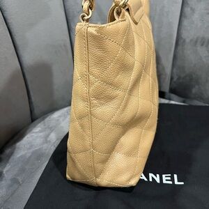 The bag is the wonderful vintage version of the current Chanel Kelly shopper bag which resells for $5000+