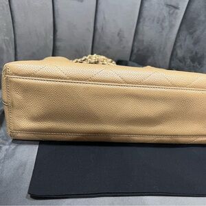The bag is the wonderful vintage version of the current Chanel Kelly shopper bag which resells for $5000+