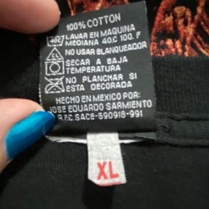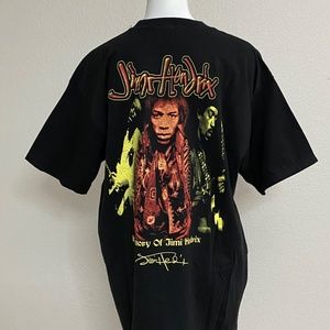 Shirt is two sided. Back has the name Jimi Hendrix “In Memory of Jimi Hendrix” with his autograph.