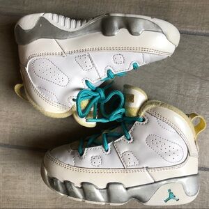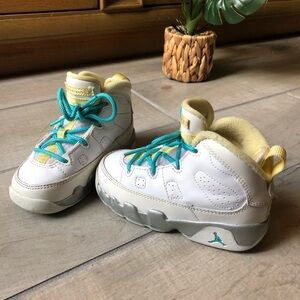 Rare. Jordan 9 retro lemon turquoise toddler size 7