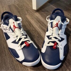 Gently worn Nike Air Jordan Retro 6 G Men's Golf Shoe size 9. White/Varsity Red/Midnight Navy colors. Only worn twice so in great condition. See photos for the few scuffs from wearing.