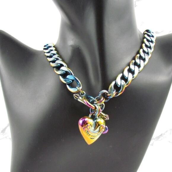 Rare Juicy Couture Y2K Rainbow Heart Charm Necklace
