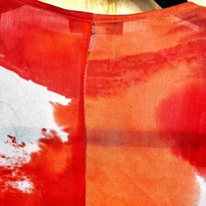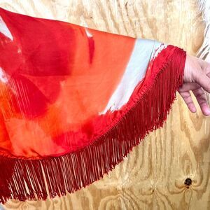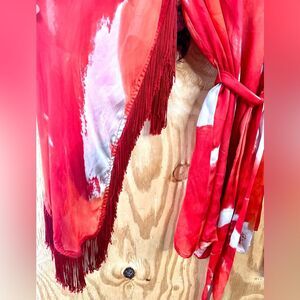 Rare KMilele Red Tie-Dye Kimono Boho Silk Top with tie fringe sleeves Sz M Gypsy