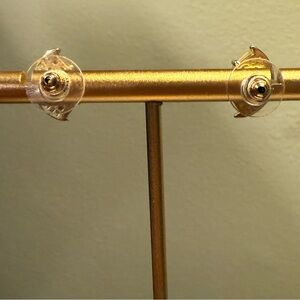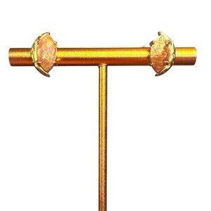 Rare Kendra Scott Marie Pink Cracked Opal/Gold Crescent Moon Stud Earrings