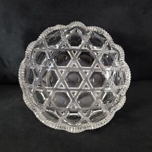 Rare Krys Tol Clear Diamond Geometric Medium Cut Crystal Scalloped Serving Bowl