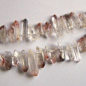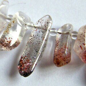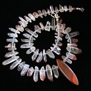 Very rare natural Lepidocrocite Super Seven crystals matched with a brick red Jasper marquise focal (43mm long). The Lepidocrocites are spaced with tiny clear Quartz beads.