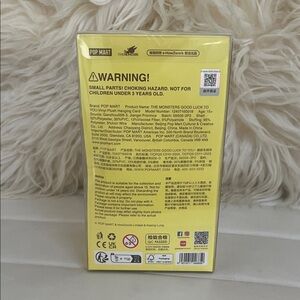 Labubu, good luck to you vinyl plush! Never removed from box. The box itself has a little crunching in the corner. You can see in the pictures, but it is in the back corner.