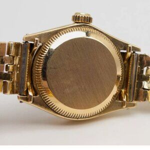 Description: Rolex ladies DATEJUST President. RARE Find and so nice...great looking piece and 6.7 inches long. RARE FACTORY ROLEX BAND and all original. Gorgeous timepiece and just serviced and runs and keeps time. Solid 18k Yellow Gold...Great looking piece and rare find. Also this service is a service that Rolex would charge around $2000 for...you get it for peace of mind at no additional charge. Comes with a 1 year parts and labor warranty. WOW!!! Retail $25,000.