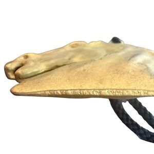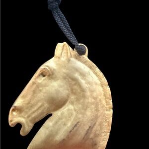 This large Hermes Horse head is absolutely stunning. It is 2.5 in/2.5 inches and comes with its original silk adjustable chord necklace. This is a very rare find. Necklace is in excellent condition inside. It is definitely a show stopping statement piece.