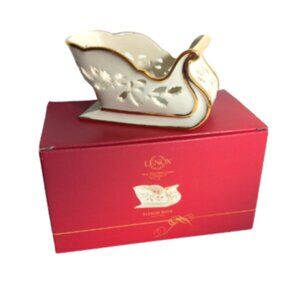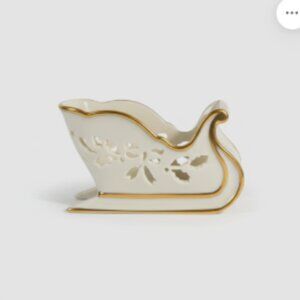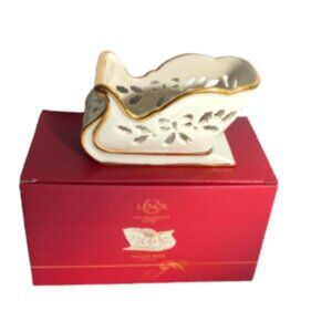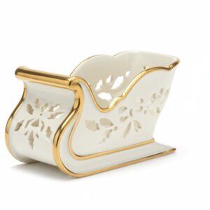 Rare and hard-to-find Lenox “For The Holidays” Sleigh Ride Votive Candle Holder, brand new in box (NIB). Features an elegant Christmas sleigh scene crafted with classic Lenox artistry — a perfect collectible for the holiday season.