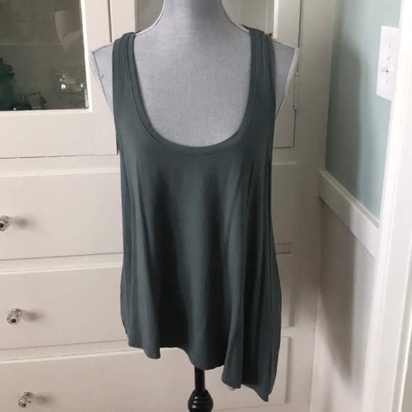 Lilla P sage colored asymmetrical tank top with deep arm holes, super trendy, new without tags. Made in Peru! Amazing quality