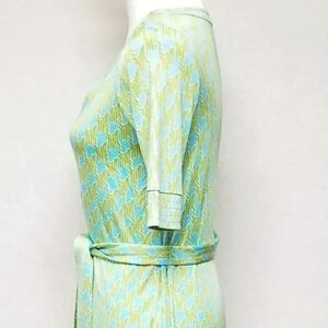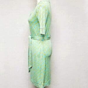 Rare Lilly Pulitzer Stretchy Silk Green Blue Houndstooth V-neck Belted Dress 4