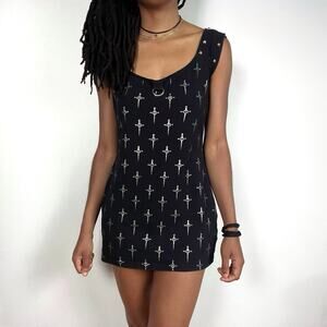 Tags: womens dresses mall goth gothic vintage y2k whimsigoth grunge scene emo biker rockstar pattern shirt girlfriend gf vintage bodycon 2000s 00s 2010s vtg hot topic core 56-6-03 21937 XL extra luscious the original cult Made in USA