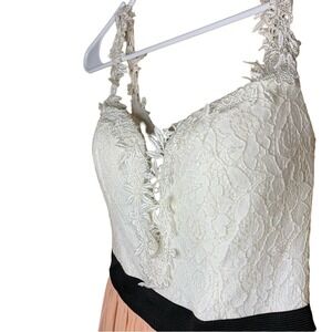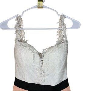 White top is a bodice style- with crotched detailing making it look like flowers are coming off of it onto your chest and shoulders
