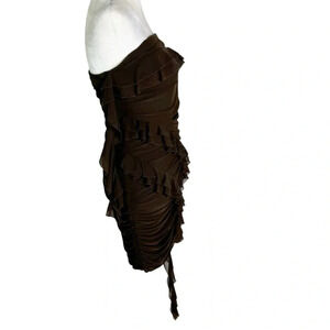 Rare London Ruched Mesh Bodycon Mini Dress Brown Size 8 NWT