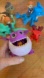All included and in great condition. Cutter crouches and extends head spikes when his back is pressed. Aggro’s neck lights up when her head is tilted up a little. Burple shoots a yellow rock when his front legs are pulled back. Winger and Summer both have three position switches that go from Dragon noises to off in the middle to Dak’s voice making familiar commands or comments. Dak’s voice is on both Winger and Summer. The only damage is Dak’s right leg was broken off and has been glued back in to the sitting position so that he can still clip into the saddle. Leyla has some color worn off on the bottom of her boots. Aggro’s head tilt is very sensitive and tends to stay back in the lighted position so you need to ensure you tilt her head back down to preserve battery life. Really rare to have them all in the same collection.