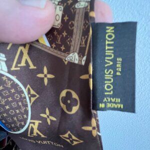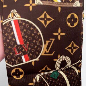 Rare Louis Vuitton Brown Monogram Trunks Bandeau Silk Scarf