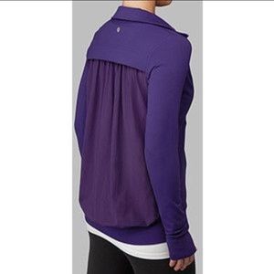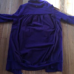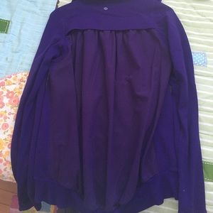 Purple lululemon jacket in decent condition has a stain in the back hardly noticeable. Thumbholes perfect for running or just a simple spring jacket. Mesh back and zipper pockets