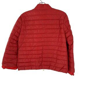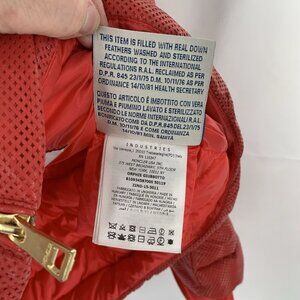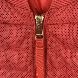 Rare MONCLER Coral Red Perforated Faux Leather Puffer Jacket Size Medium