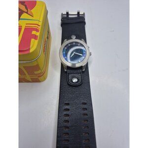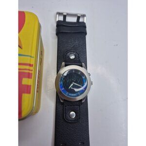 Rare Mens Fossil Blue Flame Digital Big Tic Y2K Watch Original Leather Band