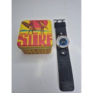 Never worn. Batteries ran down from sitting, so they have all been replaced. Comes exactly as pictured. 9" band. Dial has flames that can be started and stopped from moving b with the push of a button. Band has a small stains spot on the back that I got on it when changing batteries.