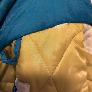 This is a very rare jacket. Can’t find any online exactly like it. There’s only one flaw and it’s in the inside lining is coming apart at the top as pictured. Please let me know if you have any questions.