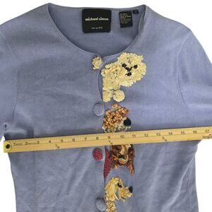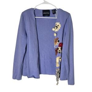 Rare Michael Simon Beaded Sequin Dog Cardigan Sweater Purple M