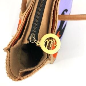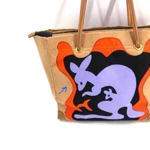 Such a fun artsy colorful tote bag from Michael Simon. Featuring a momma kangaroo and her Joey. There is also a little peek-a boo colorful crab on the bottom of the purse.