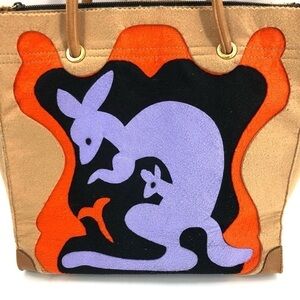 Rare Michael Simon Kangaroo Tote Bag Colorful Felt Carryall Designer Artsy Purse