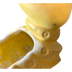This rare vintage Floraline by NcCoy pottery yellow ceramic caterpillar planter adds a playful yet sophisticated touch to any space. Its unique design is eye-catching and adds character to indoor and outdoor gardens. Crafted with attention to detail, it offers durability and charm, making it an excellent decorative piece for plant enthusiasts.