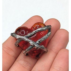 Rare Mignon Faget Red Sterling Silver 925 Secret Heart Brooch Pin w Pouch Bag