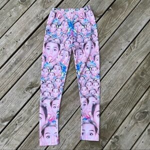 Rare pair of Miley Cyrus Bangerz tour leggings. Made in the USA. Women’s S., size tag removed. Very good shape overall with no flaws seen. Print of miley eating ice cream throughout. From 2014 Bangerz tour.