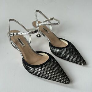 Rare Miu Miu Silver Mesh Black Glitter Kitten Heel sz 7.5