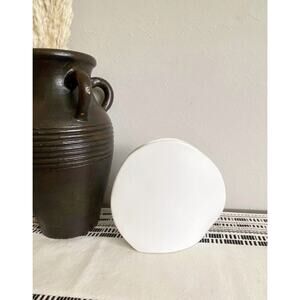 Incredible midcentury Ikebana vase by Kyohdoh Japan. This rare and beautiful vintage piece is an original from which current styles are derived from and dates from the mid-1960s. Simple, minimal and modern. The finish on this ceramic piece is satin and the soft circular shape envelops your eye to visually bring that restrained, minimal, Japanese aesthetic. Truly a timeless piece and an incredible addition to your midcentury, minimalist or eclectic decor styles.