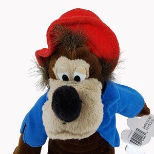 This collectible Brer Bear plush Beanie features a vibrant red hat and blue coat, crafted with soft materials. Ideal for fans or collectors of classic characters.