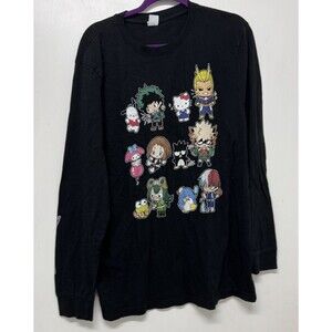 Rare My Hero Academia x Hello Kitty and Friends Black Long Sleeve Shirt Size XL