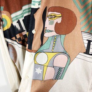 Rare NIK NIK Vintage 1970s Disco Shirt Picasso Printed in Italy 100% Nylon M