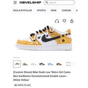 Rare NIKE DUNK LOW Size MENS 9/12 Retro Girl Honey Bee Sunflower - Flowers