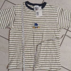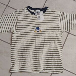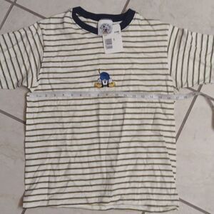 New with tag vintage (and rare) Mickey & Co striped short sleeve tee with embroidered "naughty" bent over Mickey Mouse. Made in the U.S.A.