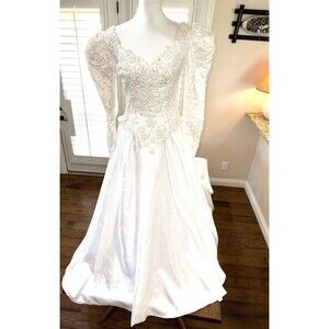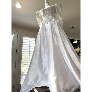Rare NWT Vintage Wedding Dress Size 10 Beaded Lace Gown Cathedral Train 80s