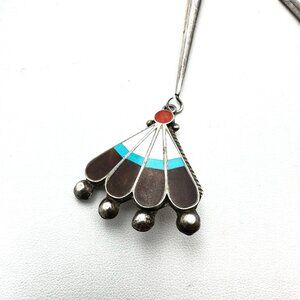 Vintage Zuni Sunface bolo tie with intricate turquoise inlay and sterling silver craftsmanship. A unique accessory highlighting Native American artistry, perfect for collectors or as a statement piece.