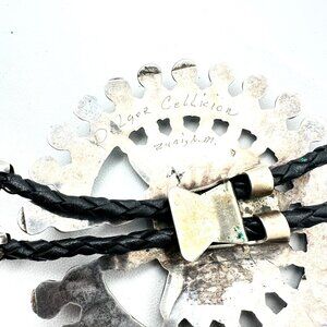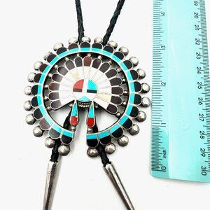 Rare Native American Zuni Cellicion Sterling Turquoise Large Sunface Bolo Tie