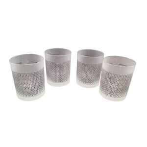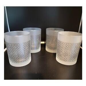 Rare Neiman Marcus Glass Barware Set of 4 Wall Street Word Search Frosted
