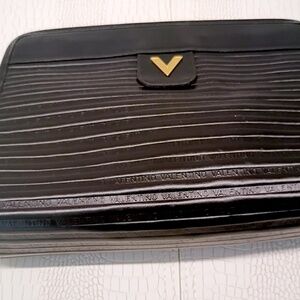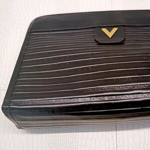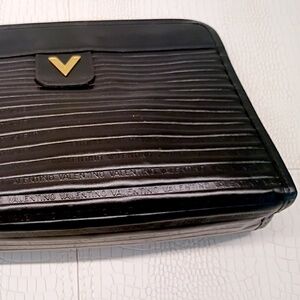 Rare "New/Unused" Vintage MARIO VALENTINO V Logo Clutch Leather Black 1786N