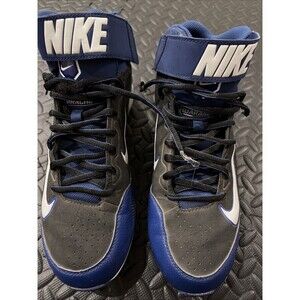 The product is a rare pair of Nike Huarache baseball/softball cleats in size 9.5 for men, featuring a blue and black color design. These cleats were manufactured in Vietnam and are designed for baseball or softball players. With the Nike brand reputation and the unique color scheme, these cleats are likely to be a sought-after item for sports enthusiasts looking for high-quality footwear. The cleats may also appeal to fans of professional baseball player Mike Trout, who is known for his exceptional skills on the field.