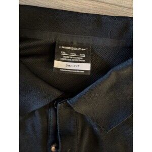 This XXL black Nike golf polo shirt is a rare find, featuring a striped pattern and a collared neckline with a pullover closure. Made from lightweight and breathable polyester fabric with a blend of other materials, this shirt is perfect for travel, activewear, or casual occasions. It is machine washable and designed for performance in outdoor sports like golf, with a classic and sporty theme. The shirt also includes the iconic Nike logo as an accent, making it a stylish and functional addition to any man's wardrobe.