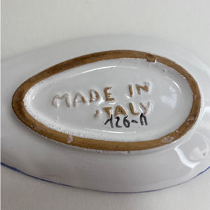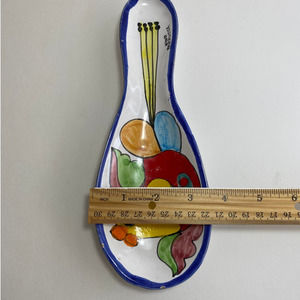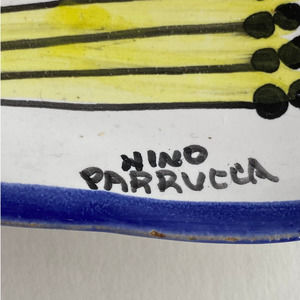 This is a very colorful spoon rest Italian Pottery signed by the artist Nino Parucca